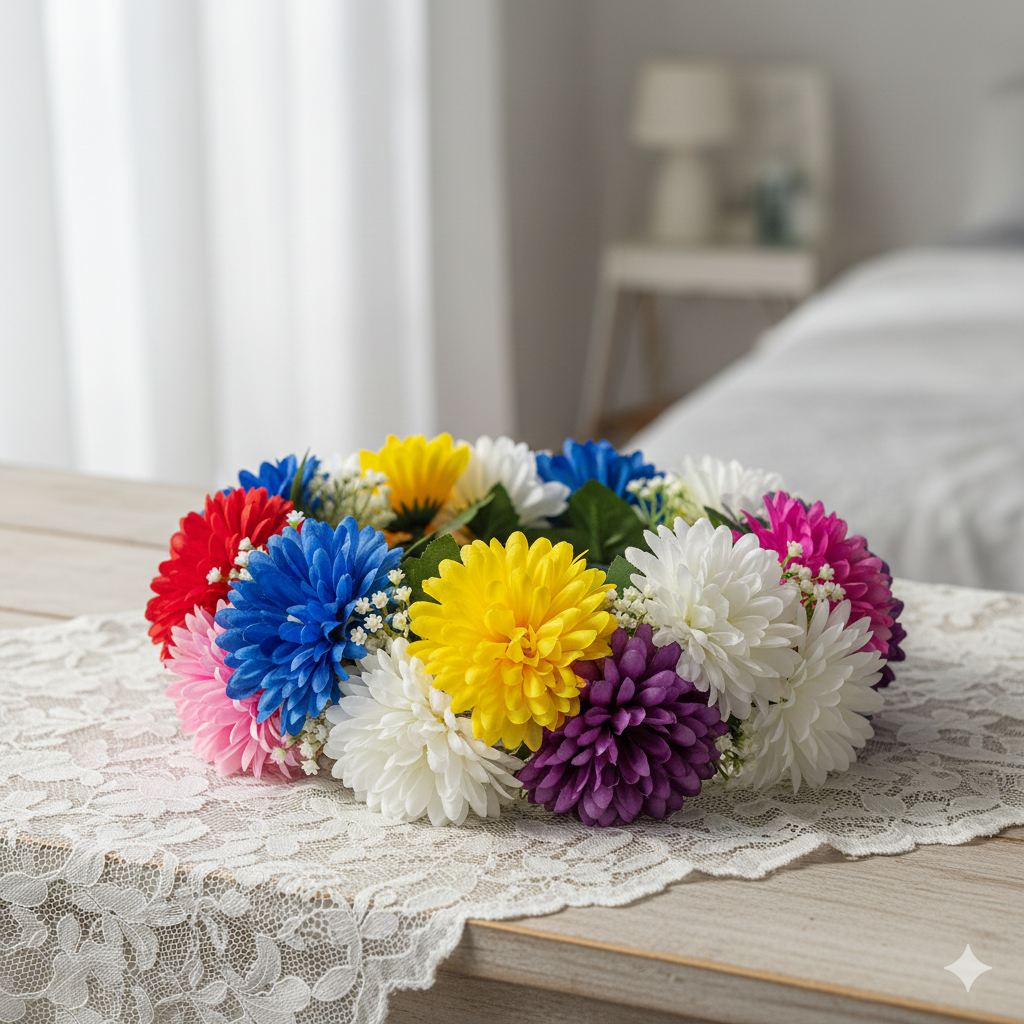 Sztuczna róża R1 to klasyczny kwiat tekstylny o wyrazistych płatkach, przeznaczony do tworzenia kompozycji dekoracyjnych i rytualnych. Praktyczny, estetyczny i trwały.