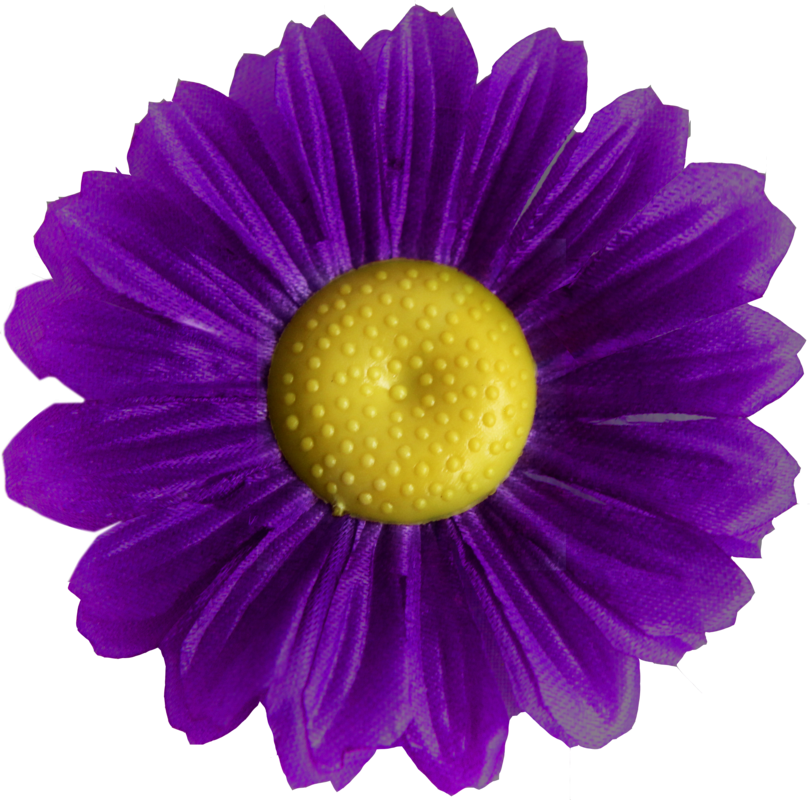 Klasyczna stokrotka o estetycznie zaprojektowanych płatkach, wykonana z materiału tekstylnego o przyjemnej satynowej fakturze. Środkowa część kwiatu jest tłoczona, zaokrąglona, z dekoracyjną powierzchnią, która dodaje mu realizmu. Kompaktowy rozmiar i stabilna forma sprawiają, że nadaje się do różnego rodzaju dekoracji.