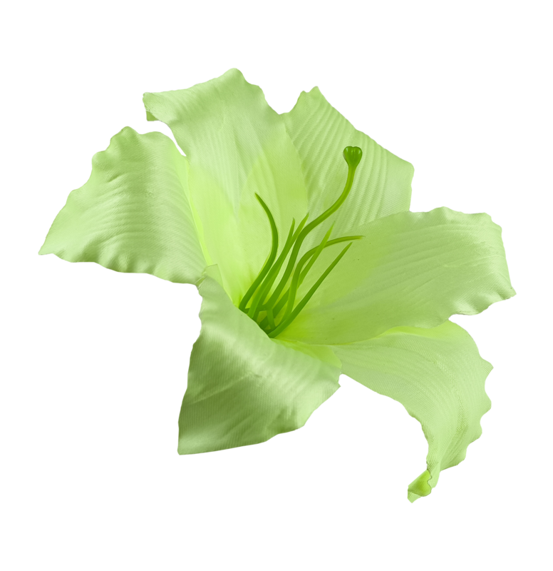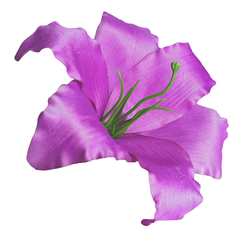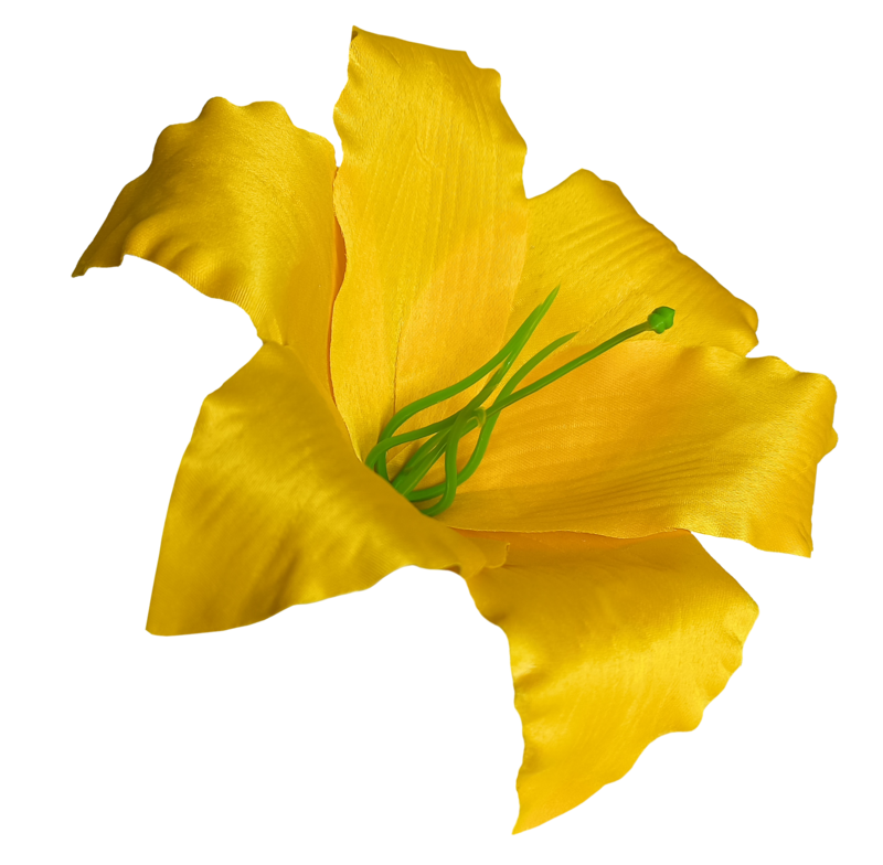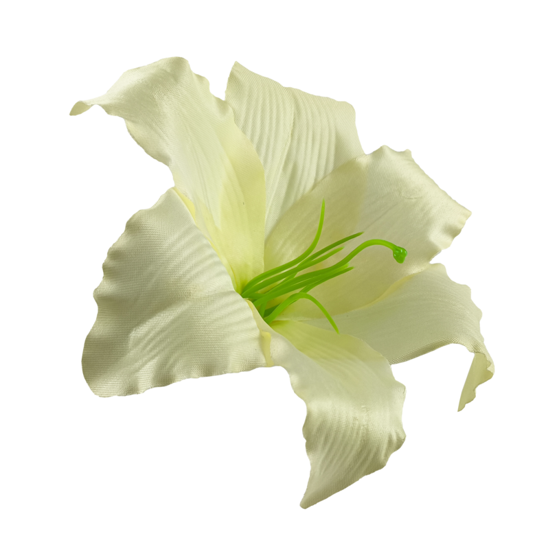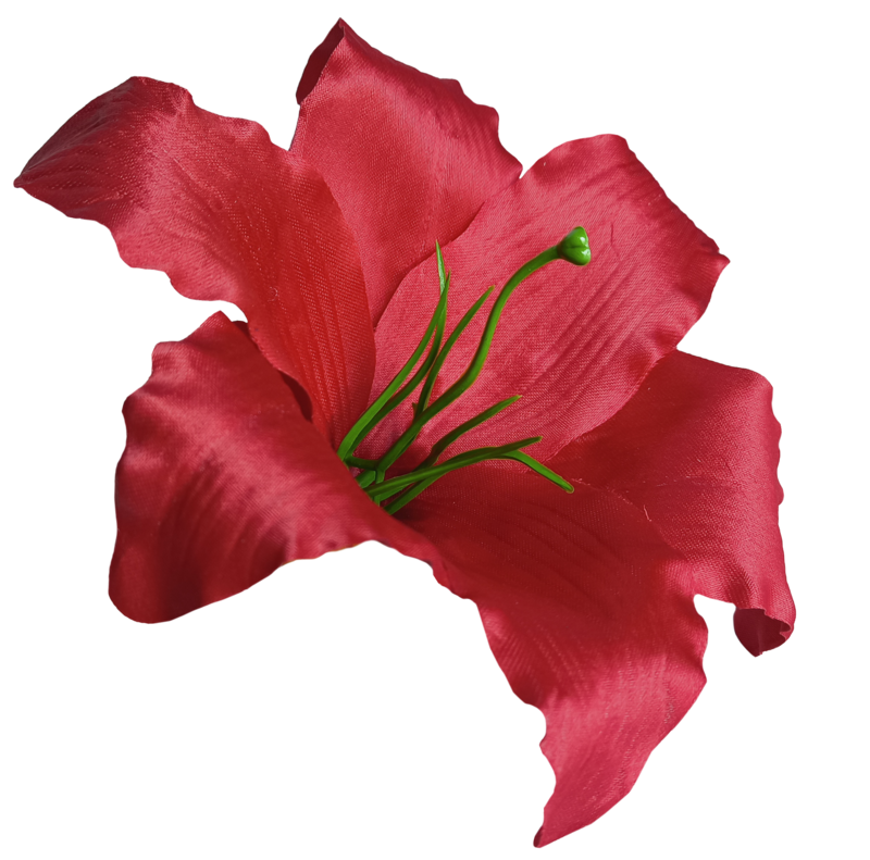 Sztuczny kwiat "Lilia 06 " o zakrzywionych, realistycznie teksturowanych płatkach. Wykonany z wysokiej jakości materiału, który nadaje kwiatowi naturalny wygląd. Środek zdobią stabilne, ozdobne pręciki, które podkreślają detale kształtu. Nadaje się zarówno do samodzielnego użytku, jak i do tworzenia kompozycji dekoracyjnych lub rytualnych.