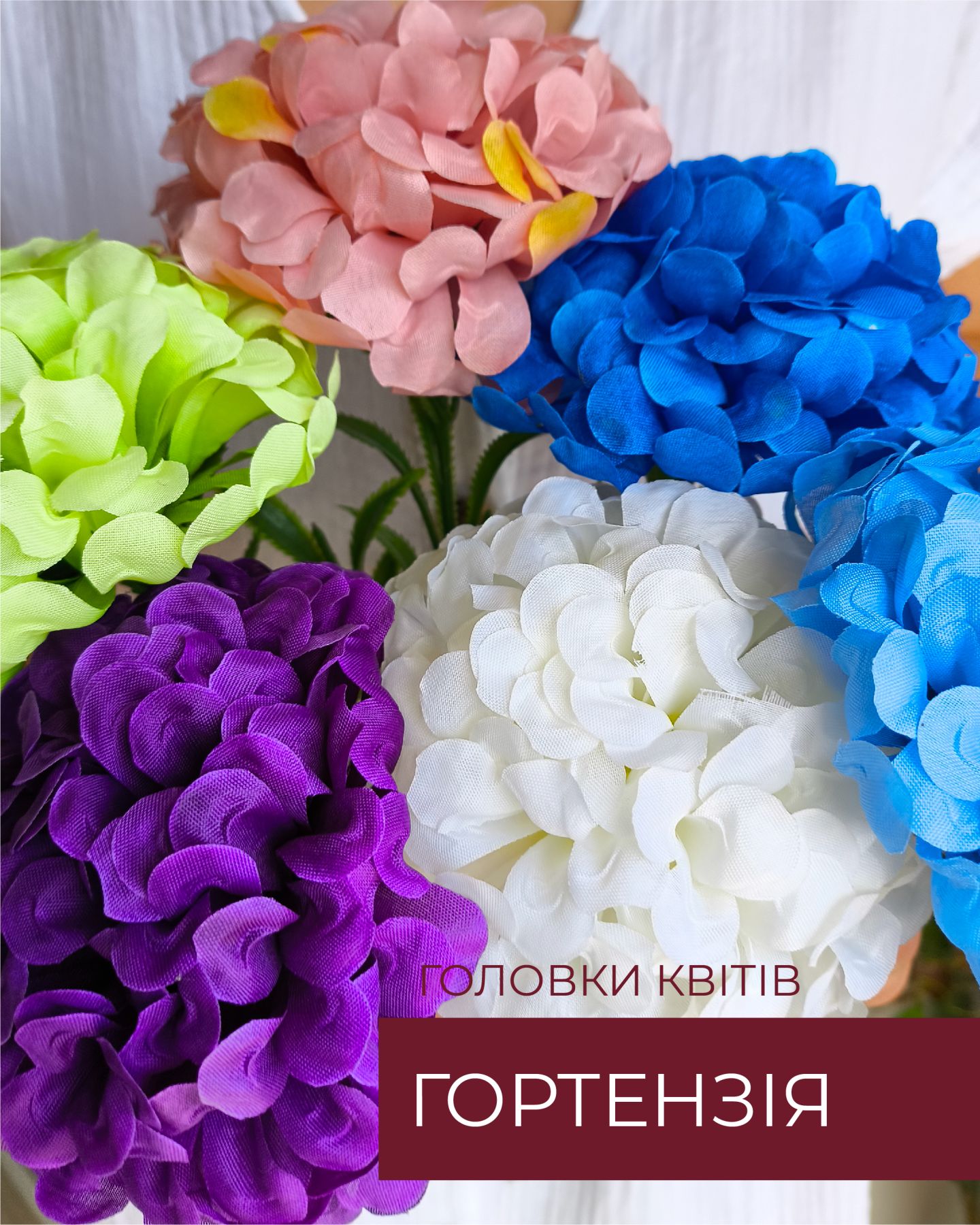 Sztuczna hortensja to dekoracyjny, kulisty kwiat o falistych płatkach, wykonany z tkaniny o delikatnym połysku. Ze względu na swoją strukturę i objętość, prezentuje się wyraziście w każdej kompozycji. Idealnie nadaje się do dekoracji łuków ślubnych, stref fotograficznych, teł kwiatowych, paneli dekoracyjnych, bukietów i dekoracji świątecznych. We florystyce rytualnej jest wykorzystywana jako kwiat bazowy do tworzenia wieńców, koszy i kompozycji, dobrze komponuje się z innymi rodzajami kwiatów, takimi jak lilie, róże i goździki.