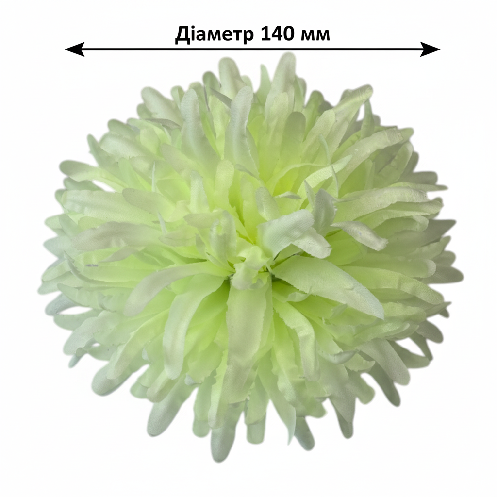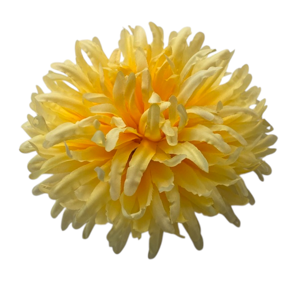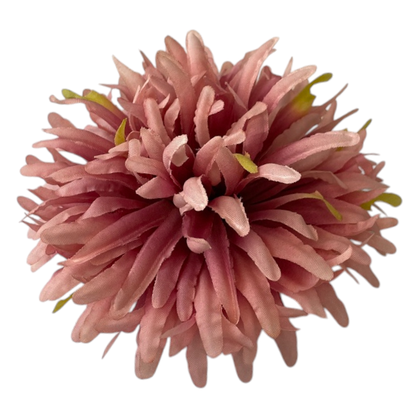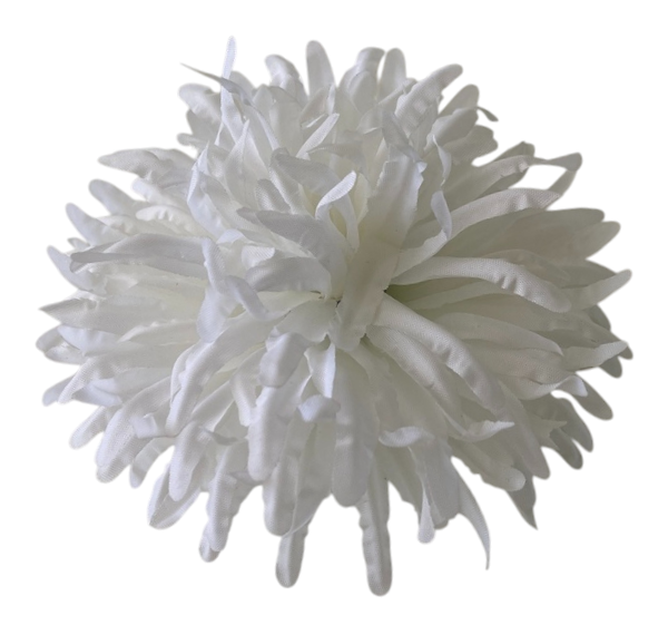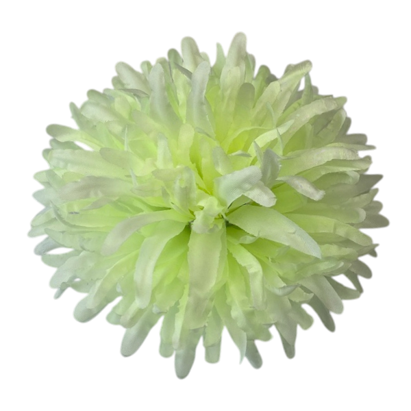 Sztuczny kwiat " Chryzantema 02" wykonany z wysokiej jakości materiału charakteryzuje się charakterystycznym, gęstym kształtem z licznymi filistymi płatkami, które tworzą bujną, krągłą sylwetkę.