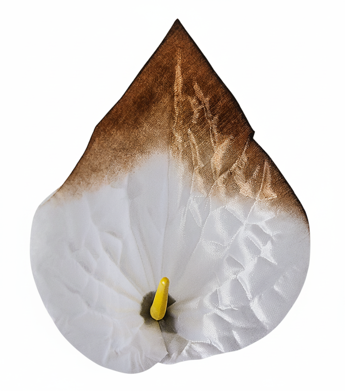 Calla Atlas to elegancki model sztucznej kalii, wykonany z błyszczącego satynowego materiału, który nadaje jej wyrazisty wygląd. Dzięki połyskliwej fakturze i wyraźnym żyłkom na płatku kwiat prezentuje się spektakularnie i dostojnie.