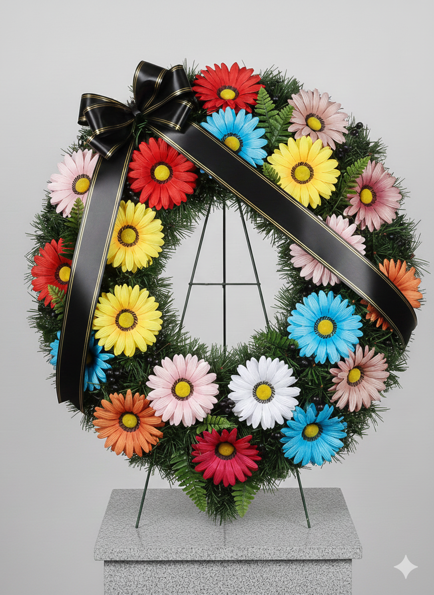 Słonecznik to dekoracyjny sztuczny kwiat o jaskrawo kolorowych płatkach i misternym środku, wykonany z wysokiej jakości tkanin. Jego walory estetyczne sprawiają, że jest popularny w produkcji wieńców rytualnych, koszyków, paneli, a także w dekoracjach sezonowych i tematycznych. Kwiat zachowuje swój wygląd przez długi czas, nie tracąc koloru ani kształtu pod wpływem czynników zewnętrznych.