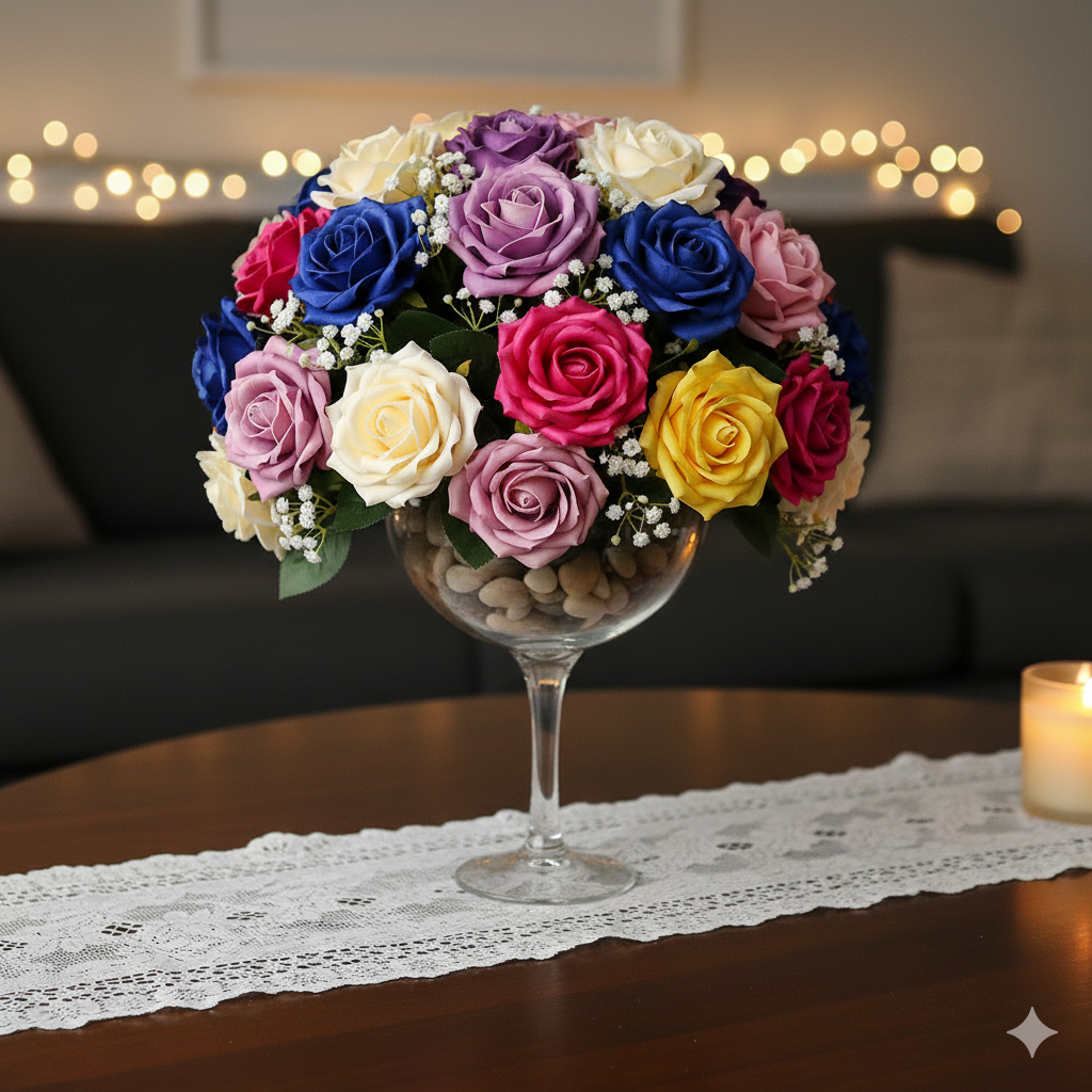 Sztuczna róża R2 to elegancki kwiat dekoracyjny o fakturze materiału tekstylnego, idealny do dekoracji kompozycji rytualnych, wystroju wnętrz i produktów florystycznych. Kompaktowy, elegancki i trwały – idealnie komponuje się z innymi sztucznymi roślinami.