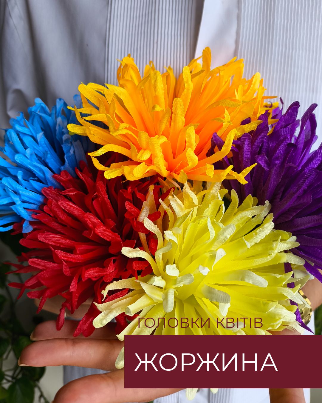 Dalia to dekoracyjny sztuczny kwiat o dużej liczbie wydłużonych płatków, gęsto ułożonych wokół środka. Kwiat wykonany jest z cienkiej tkaniny o delikatnym połysku, co nadaje mu miękkości i naturalności. W środku znajduje się żółtawe przejście, które tworzy efekt naturalnego odcienia.