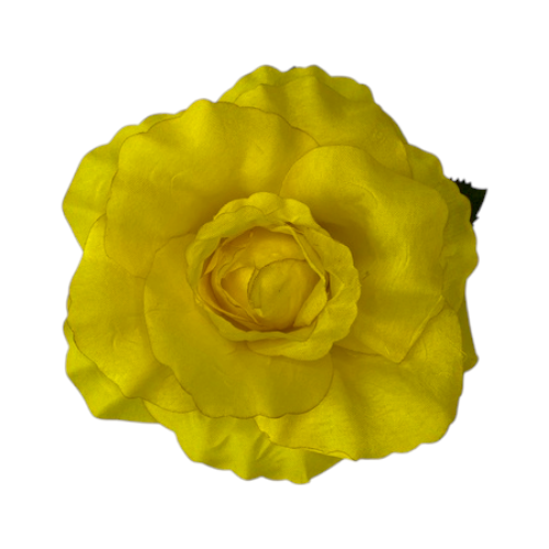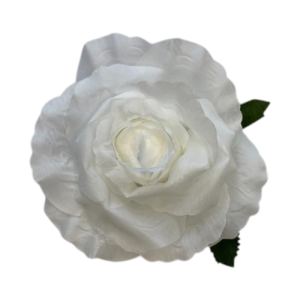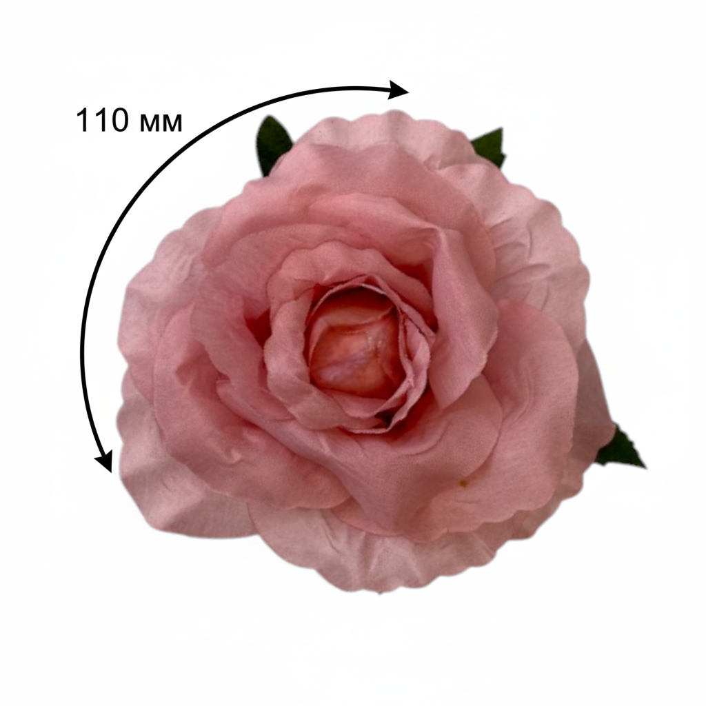 Ta sztuczna główka róży charakteryzuje się realistycznym wzorem typowym dla hybrydowych odmian herbacianych. Kwiat ma dużą średnicę 110 mm i składa się z licznych , cienkich płatków ułożonych warstwowo , co tworzy efekt obszernego i w pełni rozwiniętego pąka. Płatki mogą być wykonane z wysokiej jakości materiałów tekstylnych, takich jak jedwab, satyna lub atlas , co zapewnia przyjemną fakturę i naturalny wygląd. Elementy dekoracyjne, takie jak drobne zielone listki u nasady, dodają produktowi elegancji. Produkt nadaje się do różnorodnych dekoracji , w tym florystyki, aranżacji ślubnych, ozdób do włosów i ubrań.